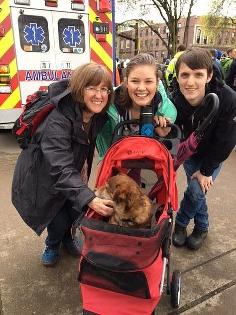 Susan, software engineer and mother of eleven-year-old Marta, newly adopted by Shelby, an Australian Shepherd(ish) dog who used to belong to Lauren, Marta’s grandmother